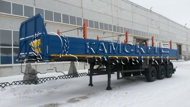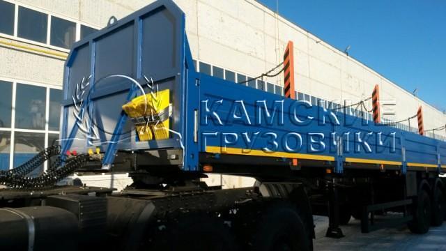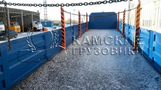 Особенности комплектации автомобиляБортовая платформа с открывающимися боковыми и задними металлическими бортами, настил пола стальной, встроенные коники из трубы 100х100х5мм, коники выдвигаются на 300 мм в каждую сторону. Рама сварная с двумя лонжеронами из двутавров переменного сечения сталь 09Г2С. Объем бортовой платформы без коников 22 м3, с кониками 46 м3.